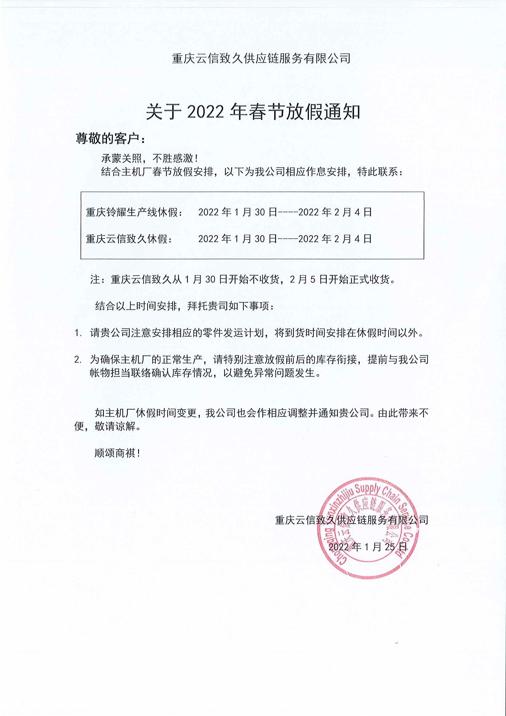 2022年春节放假通知